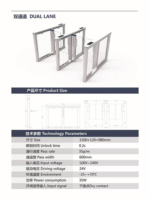 1.速通門B307系統(tǒng)具備防撞功能,當(dāng)有外物在未授權(quán)的狀態(tài)下撞擊擺桿,擺桿運(yùn)動(dòng)角度達(dá)到菜單設(shè)定的值(如 2°),控制器_會(huì)啟動(dòng)剎車機(jī)構(gòu),阻止擺桿運(yùn)動(dòng),并啟動(dòng)聲光報(bào)警。當(dāng)外力進(jìn)一步增大,剎車控制器會(huì)保護(hù)擺桿不被撞斷,外力撤除后,擺桿自動(dòng)歸位,系統(tǒng)正常; 2.速通門B307統(tǒng)具備角度分辨和零位自檢功能,包含 500P/R 編碼器,分辨精度高,這種高精度的傳感器的優(yōu)勢是使擺桿轉(zhuǎn)動(dòng)_; 3.非法進(jìn)入有報(bào)警提示功能; 4.防沖功能,在沒有接收功能開閘信號(hào),擺臂自動(dòng)鎖死; 5.紅外防夾功能,在擺臂復(fù)位的過程中紅外檢測到人在通道中,擺臂會(huì)自動(dòng)回到打開狀態(tài); 6.統(tǒng)一標(biāo)準(zhǔn)的對外電氣接口,可與多種讀卡器相掛接,并可通過管理計(jì)算機(jī)實(shí)現(xiàn)遠(yuǎn)程控制與管理; 7.速通門B307系統(tǒng)設(shè)有過流保護(hù)裝置,當(dāng)負(fù)載_過某設(shè)定值(如 2._),系統(tǒng)停止工作,以免燒壞電機(jī)等設(shè)備;